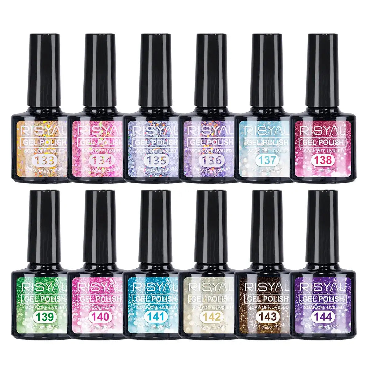 Glitter Sequins Gel Nail Polish Sparkly Shiny Pink Yellow Blue Green Gel Nail Polish Set Soak Off U V Nail Gel Nail Art Manicure