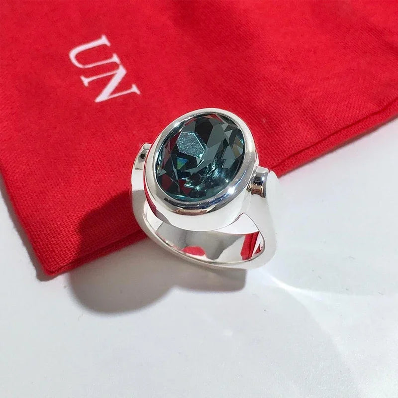 HSC 2022 New Edition UNO DE 50 Trendy Silver Plated 14k Yellow Gold Charm Silver Sapphire Ring Niche Jewelry Gift