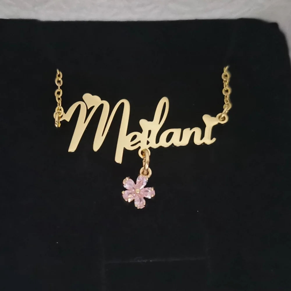 LeeChee Flower Zircon Small Pendant Custom Name Letter Nameplate Necklace Engraved Bracelet Cute Jewelry Set Gift For Kids