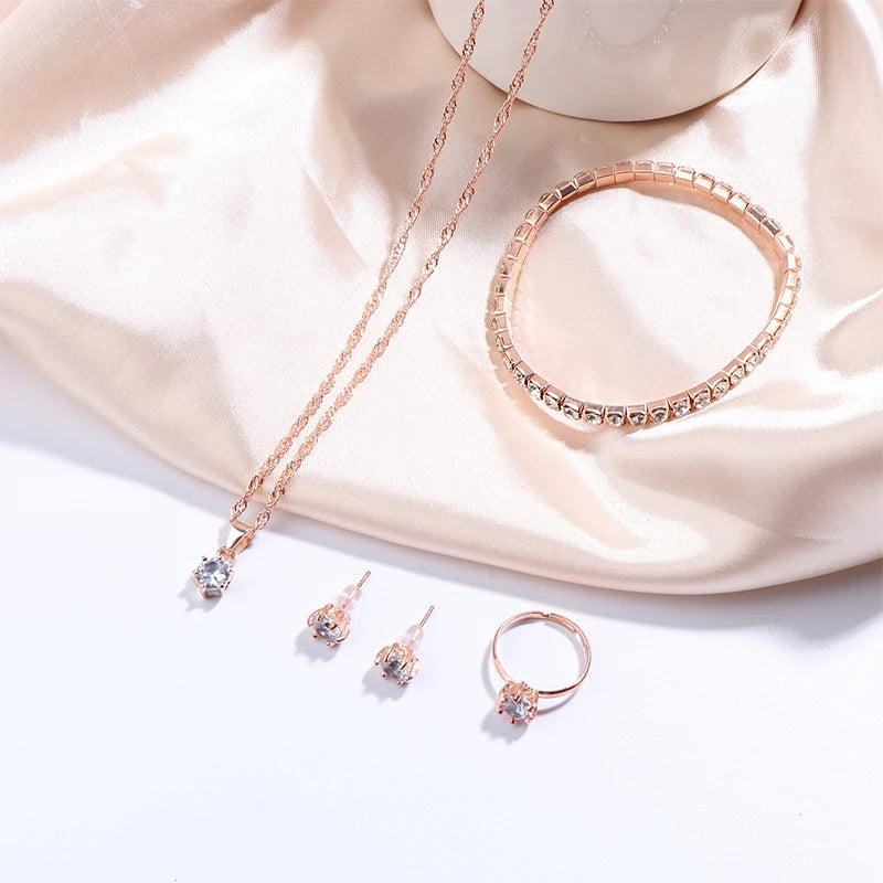 Luxury Women Ring Necklace Earrings Rhinestone Bracelet Female Casual Ladies Jewelry Set