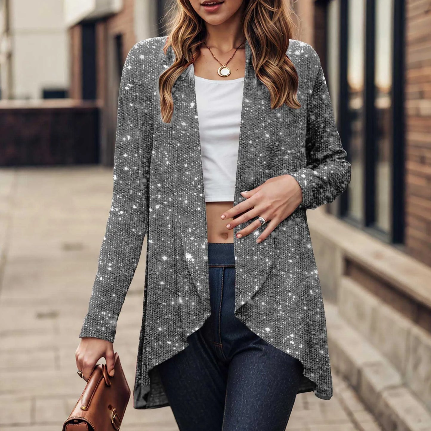 Party Hot Cardigan Women’S Sequin Open Front Asymmetrical Hem Jackets Long Sleeve Solid Color Casual Fashion Glitter Clothes