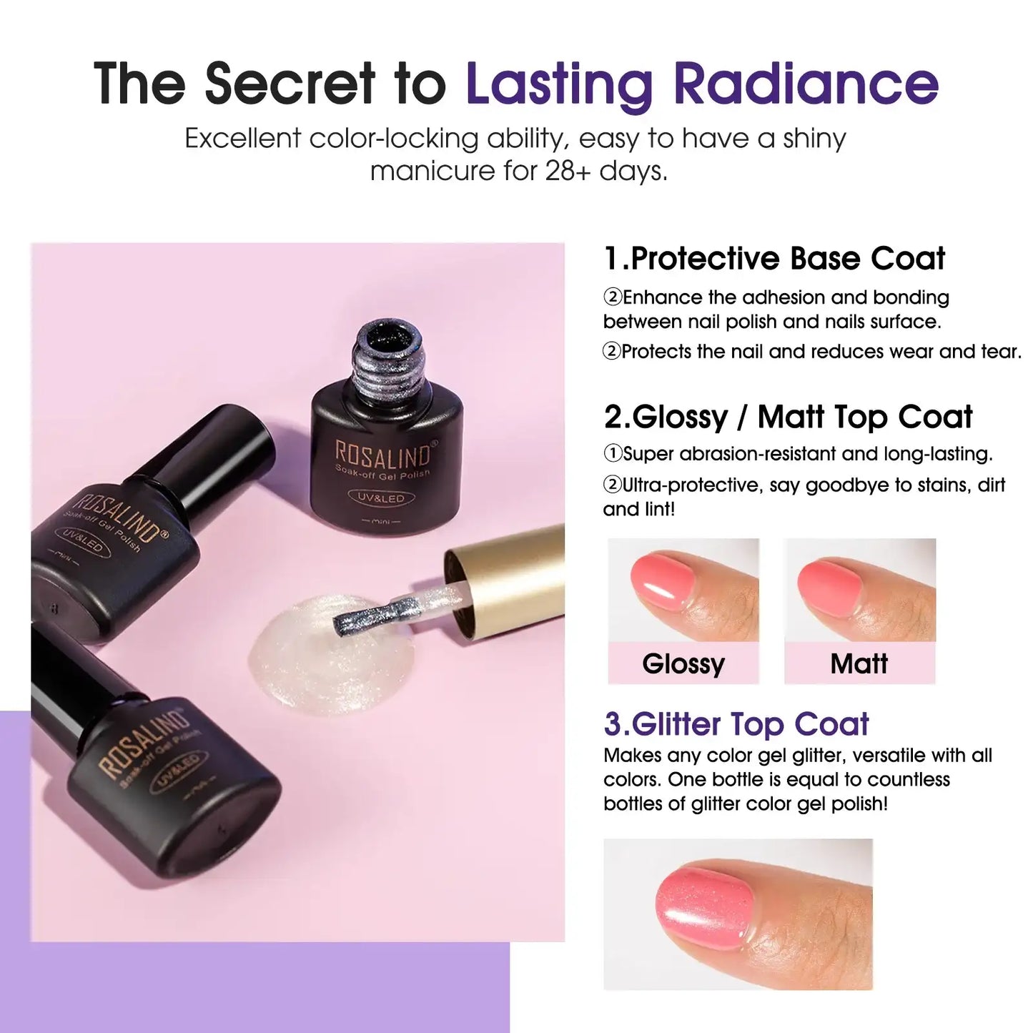 ROSALIND Gel Nail Polish Set 20 Colors with Base and Top Coat Soak Off Nail Gel Kit Long Lasting Glossy Matte Nail Gel
