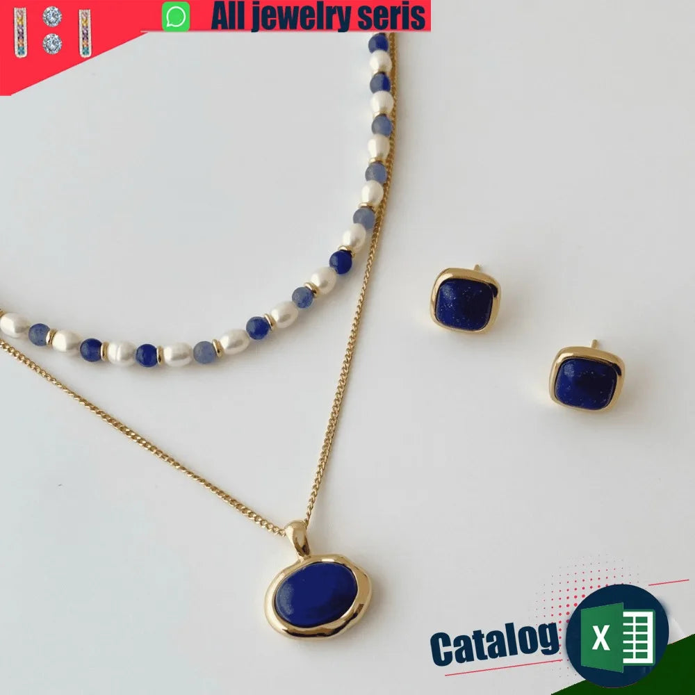 Serenity Blue Tone Jewelry Set Necklace Pendants Earrings Bracelet Gold Plated Coordinating Minimalist Collection