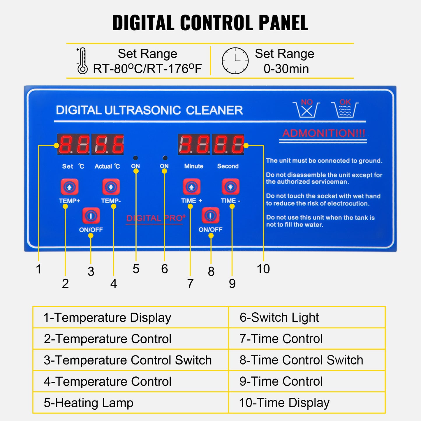 VEVOR 1.3L 2L 3L 6L 10L 15L 22L 30L Ultrasonic Cleaner Lave-Dishes Portable Was