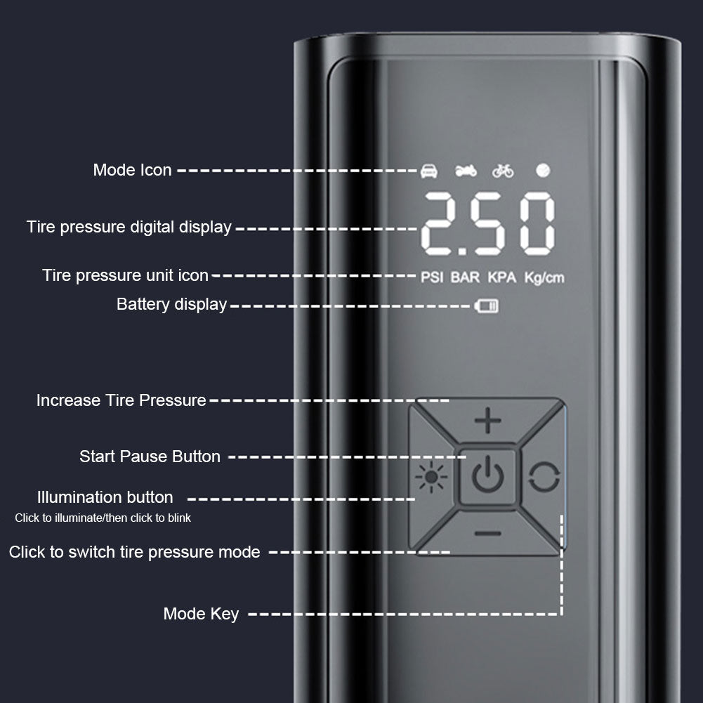 Wireless Car Air Compressor Rechargeable Air Pump Rapid Filling Portable Electr