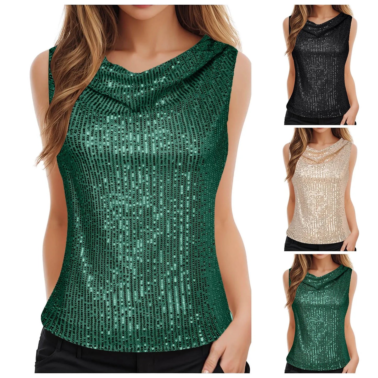 Women'S New Sequin Vest Gorgeous Sleeveless Sparkly Cropped Camisole Nightclub Popular For Outerwear Banquet Annual Meeting Clothes